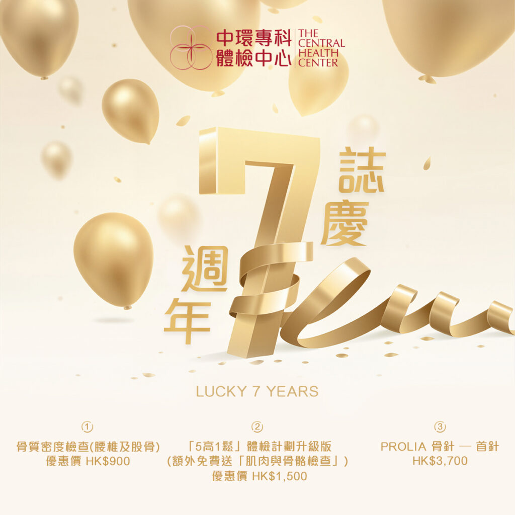 為慶祝中環專科體檢中心成立 7 週年,我們推出一系列限時健康優惠,幫你及早了解骨骼及身體狀況,預防問題於未然。