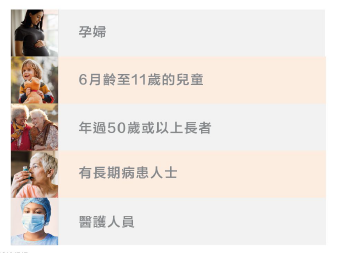• 医护人员(包括安老院舍和残疾人士院舍的护理人员;及处理流感病毒样本的实验室人员);