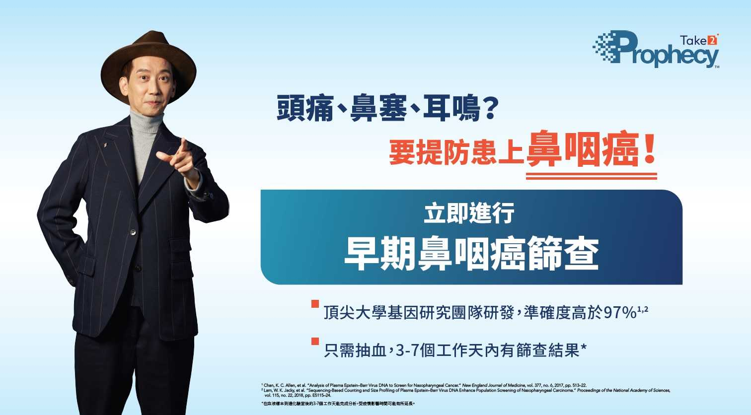 Take2 Prophecy™ 是一項無創早期鼻咽癌篩查,採用次世代DNA測序技術 (NGS: Next-generation Sequencing),專門捕捉血液中的鼻咽癌DNA訊號,即可有效識別出未有明顯病徵的早期患者,提高其成功治療的可能性及存活率;其靈敏度更高於97%¹,²,冠絕市場上同類測試!