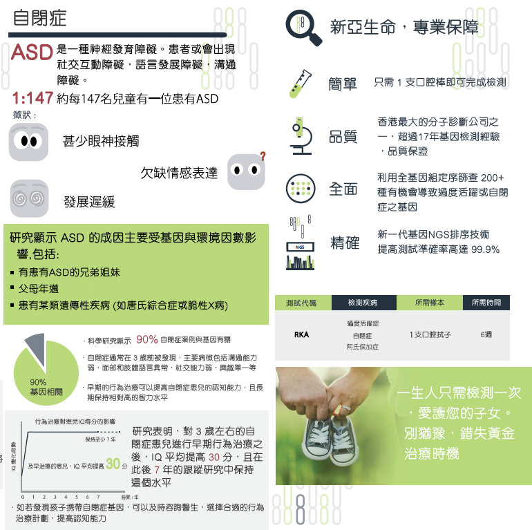 • 利用全基因組定序篩查200+種有機會導致過度活躍及自閉症之基因