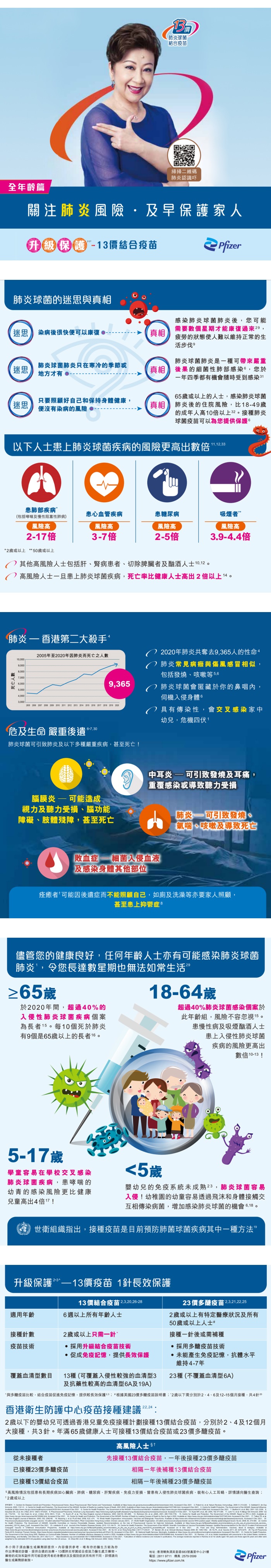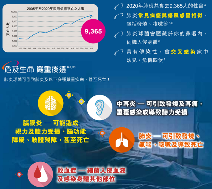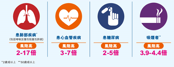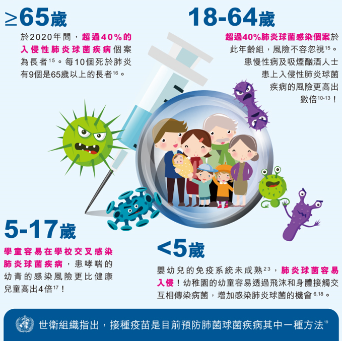 - 高風險人士一且患上肺炎球菌疾病,死亡率比健康人士高出2倍以上。
