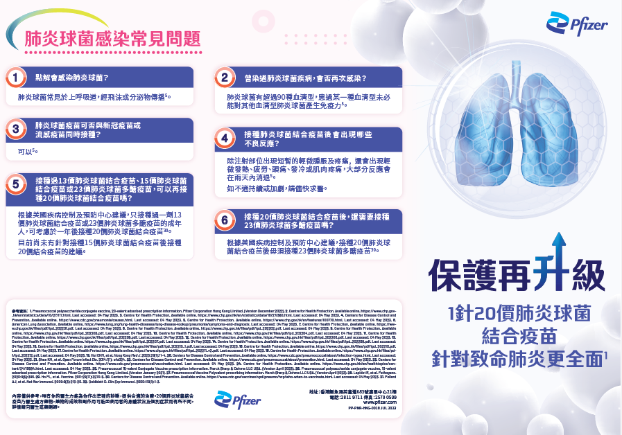 有關新一代肺炎球菌結合疫苗的更多資訊,請向醫生查詢。