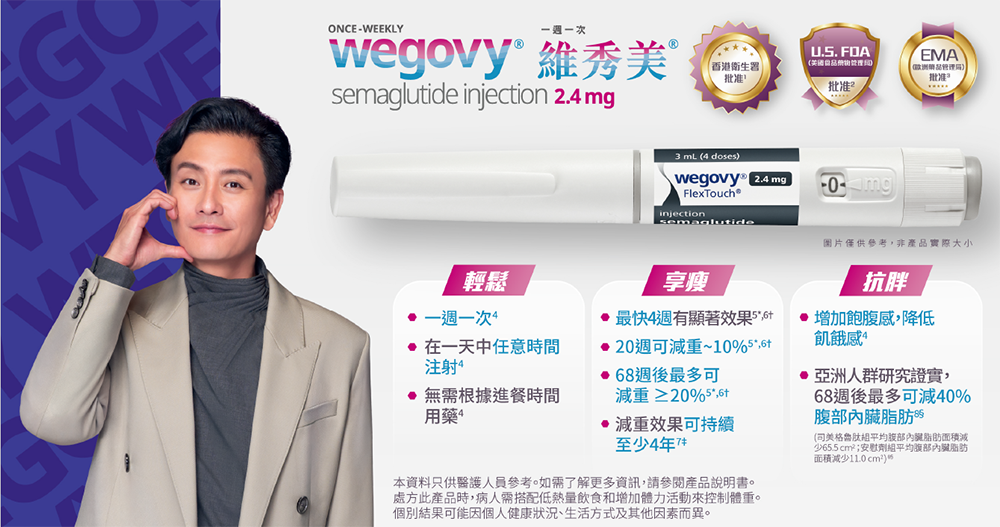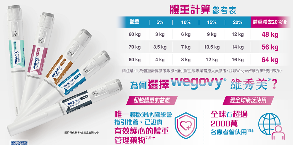 - 長期維持:臨床研究證實,患者在使用 Wegovy 療程後能實現並維持顯著的體重減輕(平均可達 15% 或更多)。