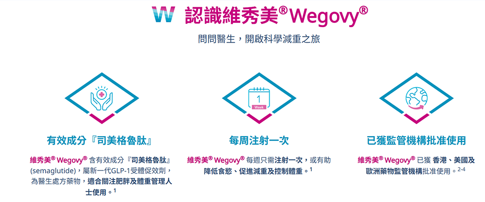 - 青少年: 12歲及以上患有肥胖症(BMI≥95百分位)且體重超過 60 公斤的青少年。值得一提的是,維秀美® 是香港首款獲批用於12歲及以上青少年的每週一次處方減重藥物。